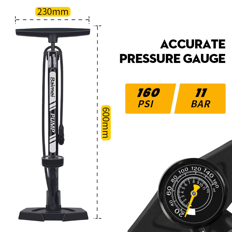 BAIMEI vente directe d'usine pompe à vélo au sol de haute qualité, convient aux types de valves Schrader et Presta accessoires de vélo de pompe à air portables