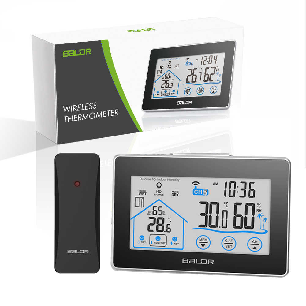 Station météo numérique BALDR avec réveil, moniteur de température et d'humidité, thermomètre à écran tactile, hygromètre