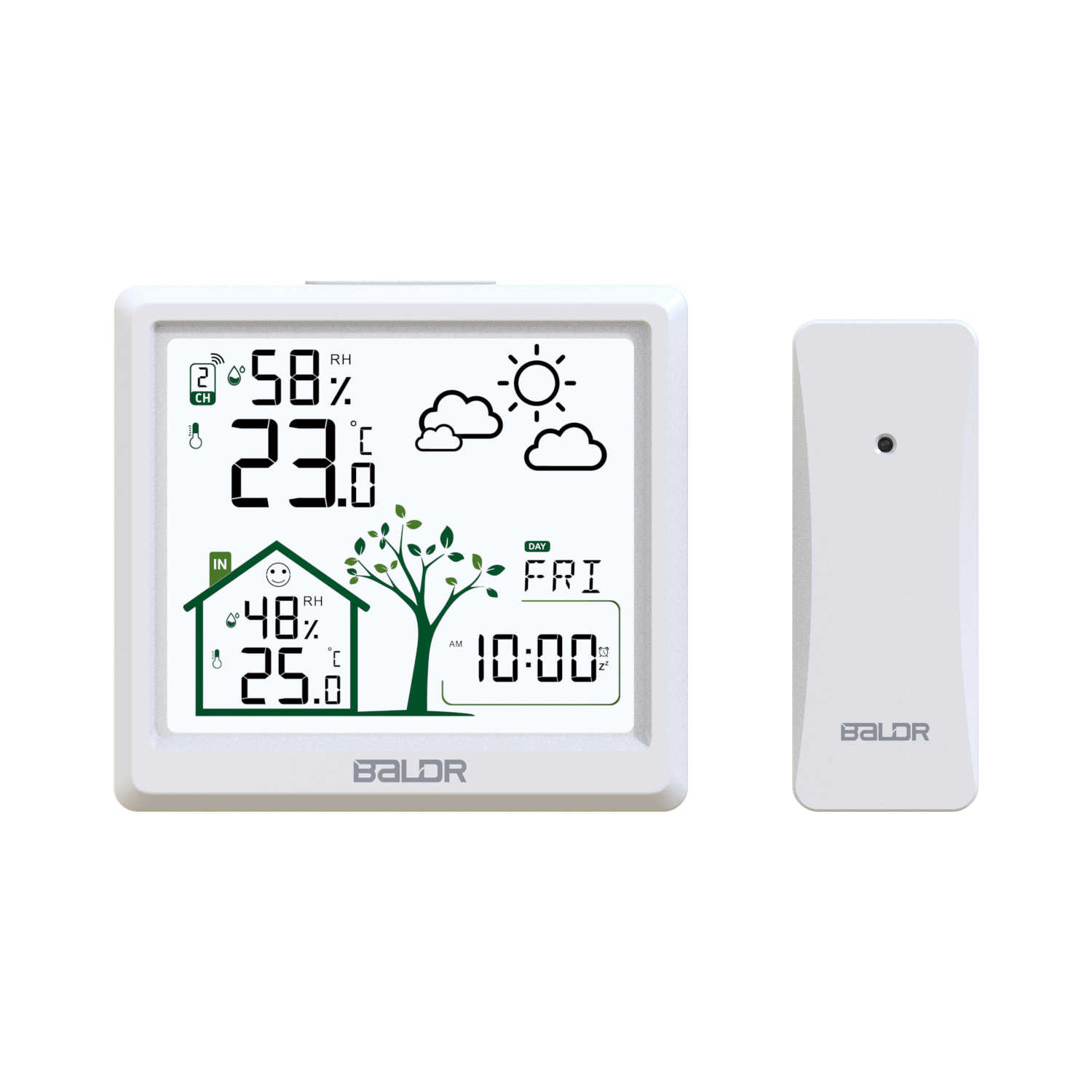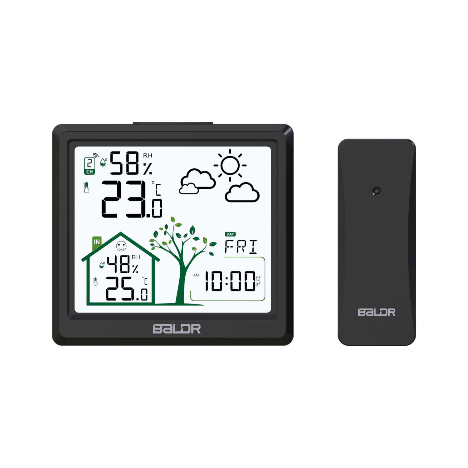 BALDR Nouveau Hygromètre Thermomètre Sans Fil Horloge Intérieur Extérieur Numérique Station Météo Horloge Murale Prévisions Météo