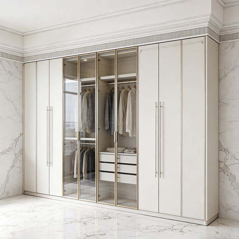 Armoire en bois de luxe contemporaine personnalisée BALOM avec portes coulissantes en verre, placard de chambre à coucher moderne personnalisé