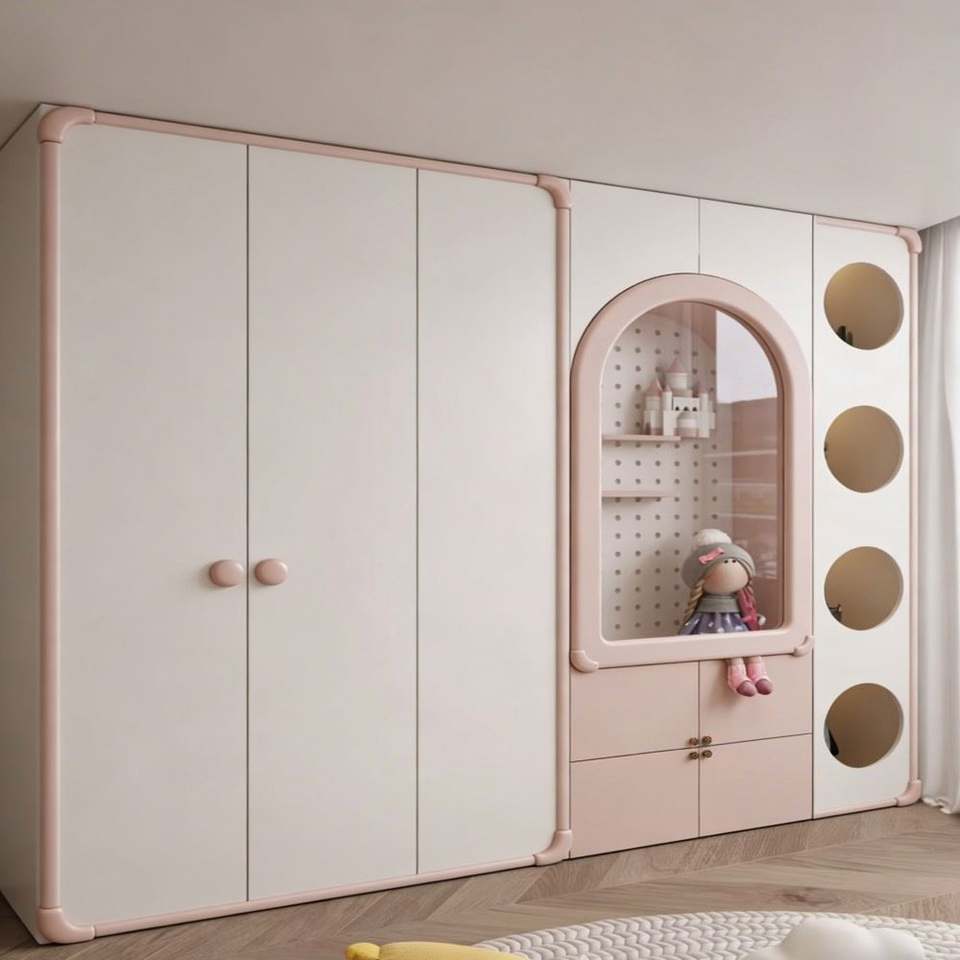 Armoire de chambre à coucher moderne personnalisée BALOM pour fille avec vitrine en verre cintré et panneaux décoratifs ronds