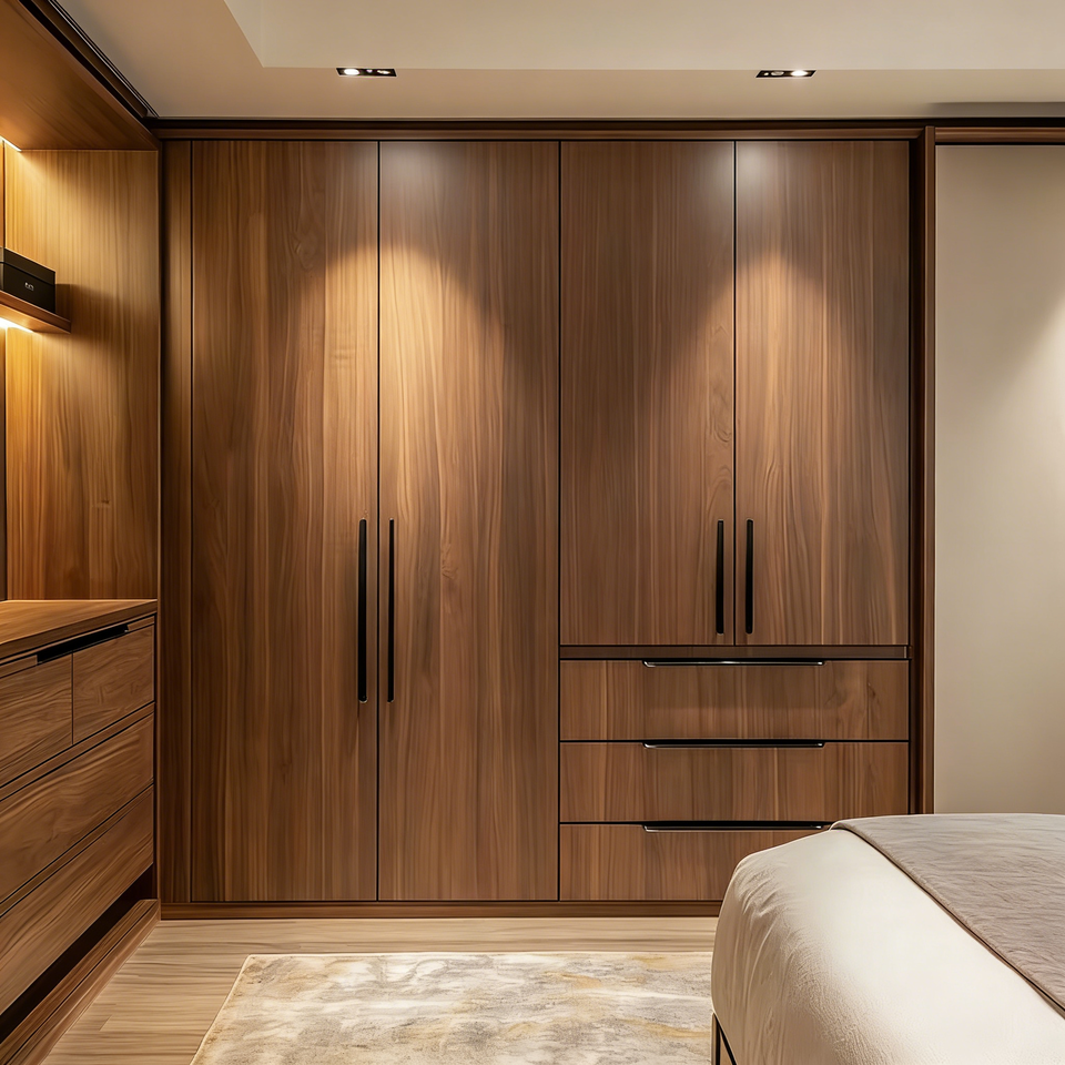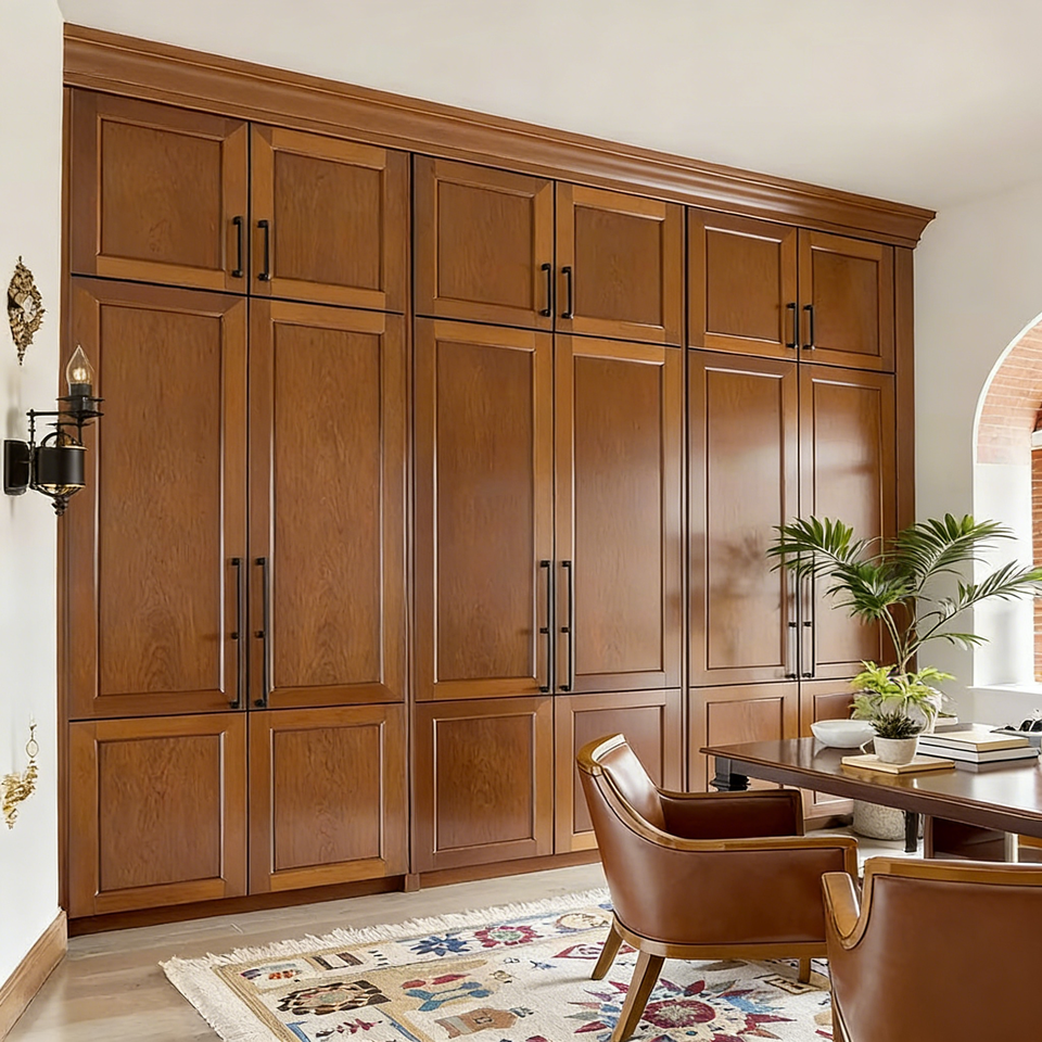 BALOM Warm Brown Wood Wardrobe with Hinged Doors, Minimalist Custom Storage Cabinets Bedroom Furniture Best Price Ardrobe