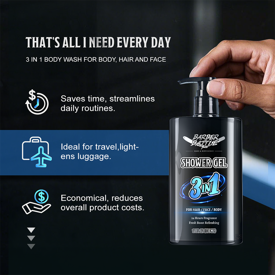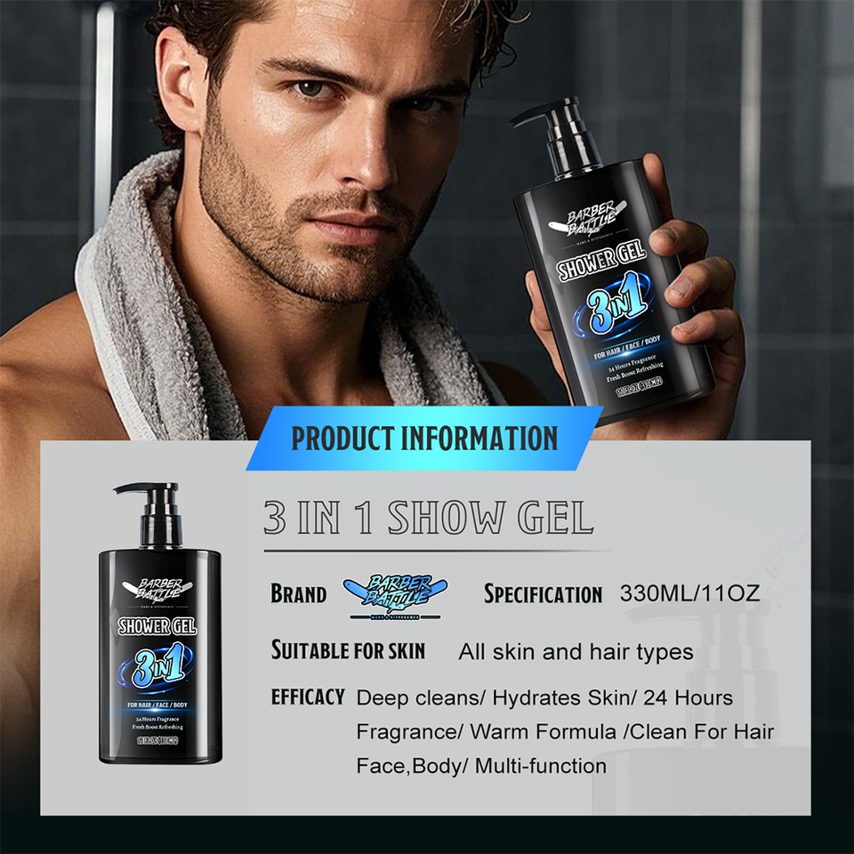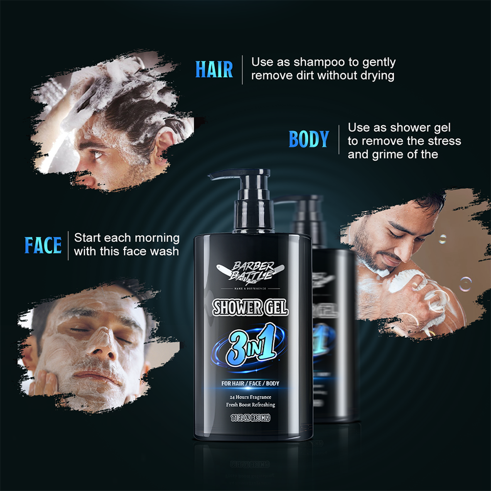 BARBERPASSION Factory Private Label Vitamin E Smooth Men's 3in1 Body Wash Shower Gel Set for Men
