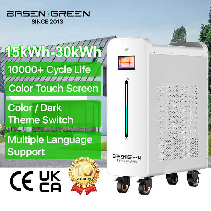 Batterie Solaire Lithium-Ion LiFePO4 BASEN GREEN 15 kWh 30 kWh 48 V 300 Ah 600 Ah, Pack de Batteries LiFePO4 51.2 V 15 kWh 30 kW