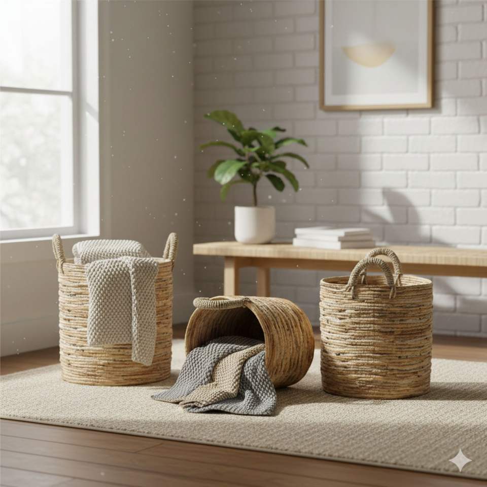 Ensemble de 3 paniers en écorce de bananier artisanale