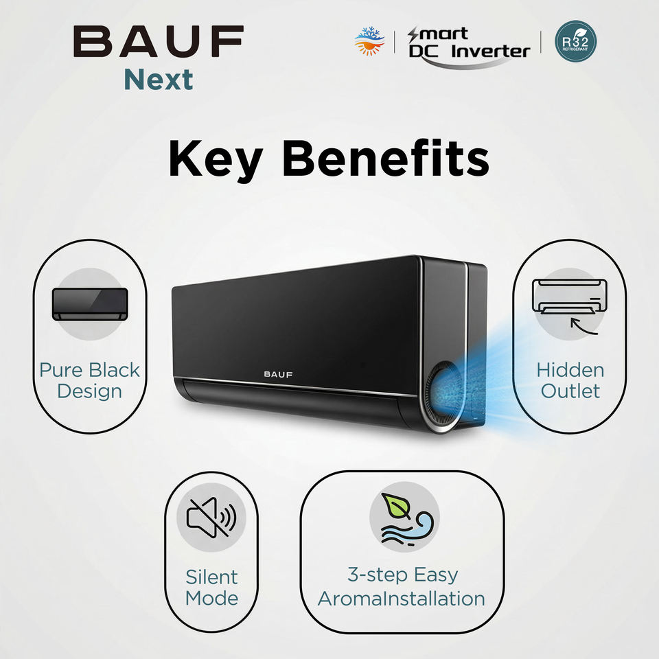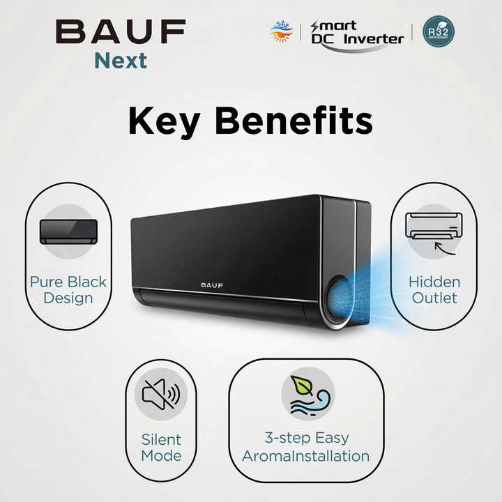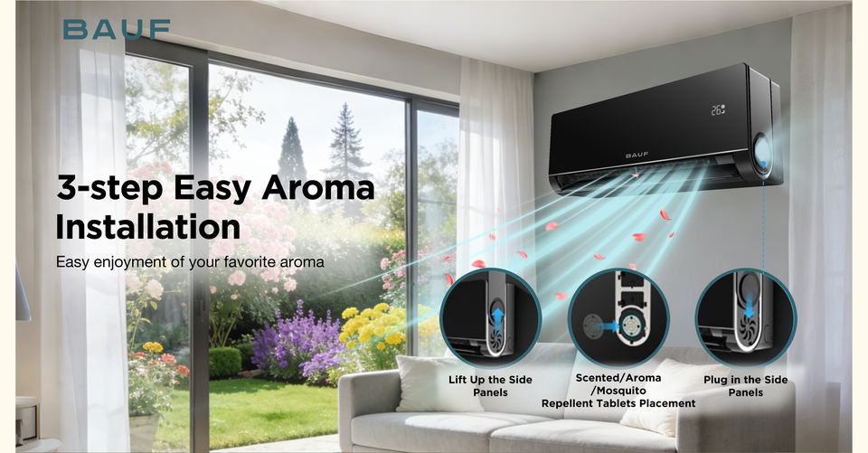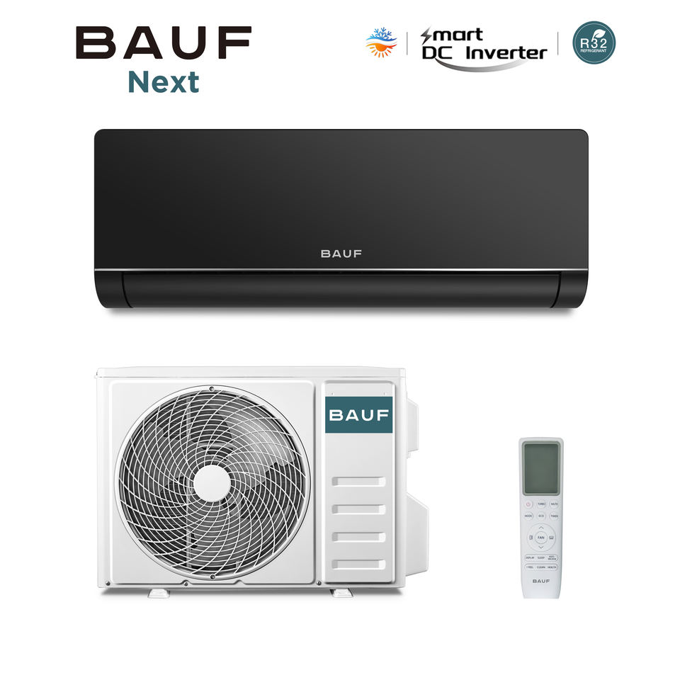 Climatiseur split inverter BAUF 12000 BTU WiFi R32 18dB silencieux, nano-autonettoyant, haute performance énergétique (SEER)