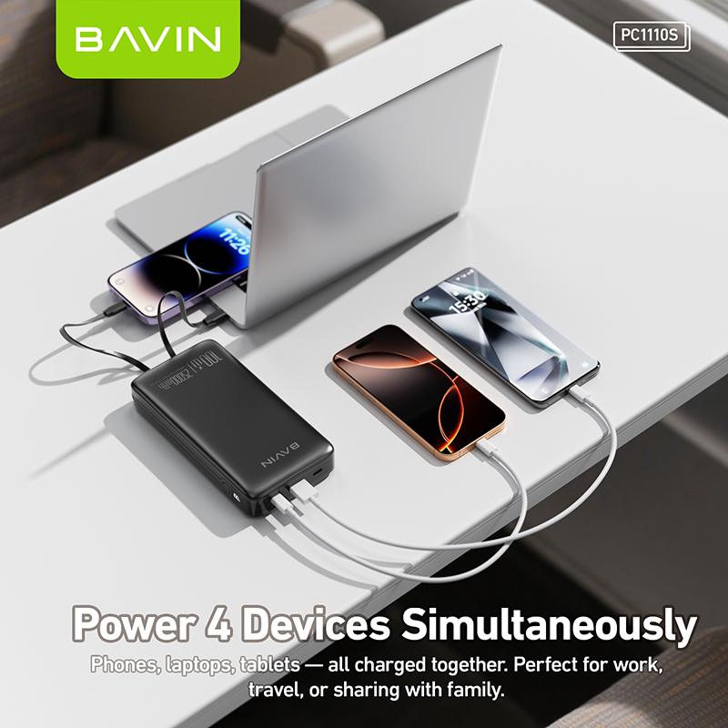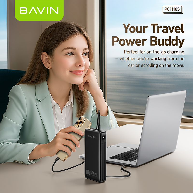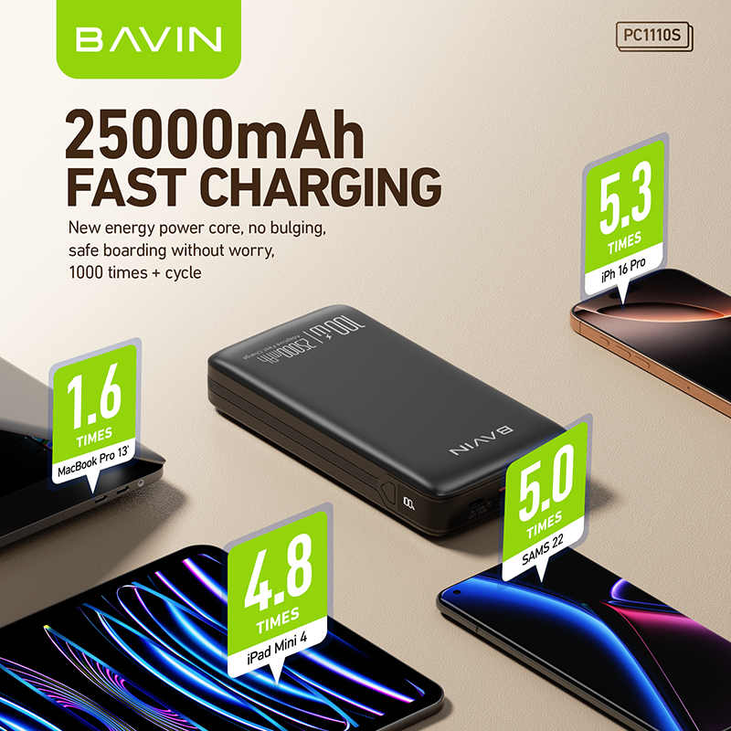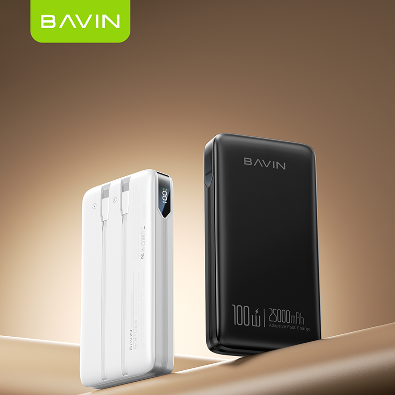 BAVIN 100W Super Fast Charging PC1110S 25000mah Power Bank avec chargeur rapide Type C Câble USB C