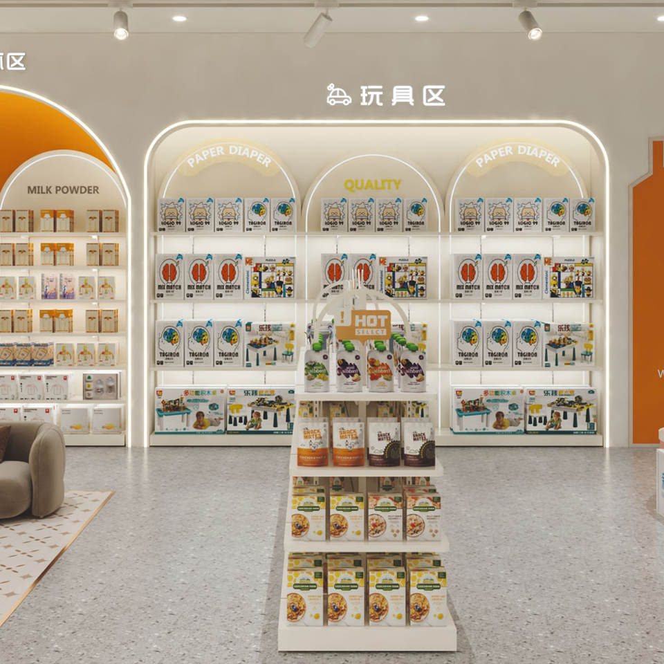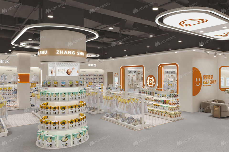 BBC014 Présentoir de vêtements pour bébé de style ton chaud, table de présentation de jouets, décoration intérieure pour les magasins de maternité et de bébé