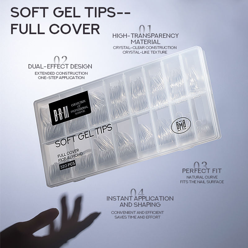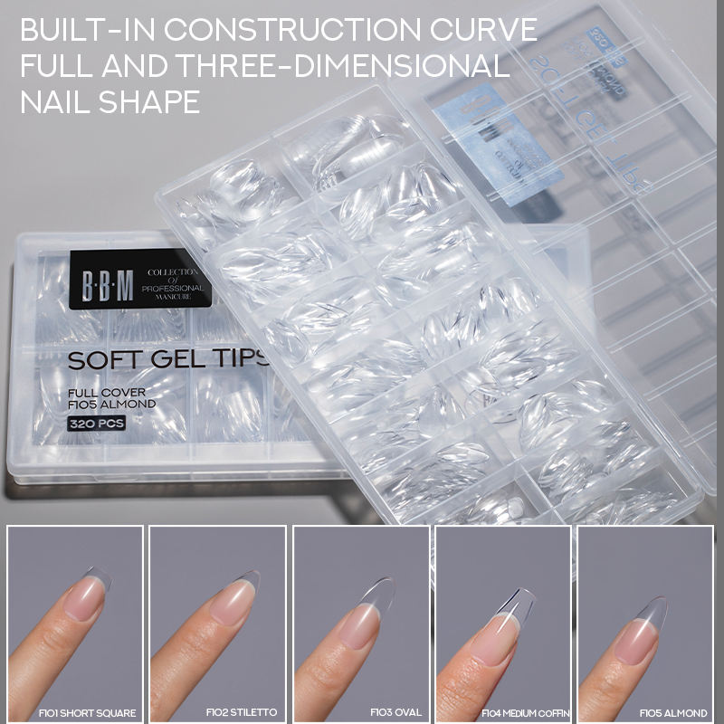 BBM – Nouveaux embouts d'ongles en gel souple transparents, de forme amande ovale, cercueil ou stiletto, courbés en C, de haute qualité, pour marque privée
