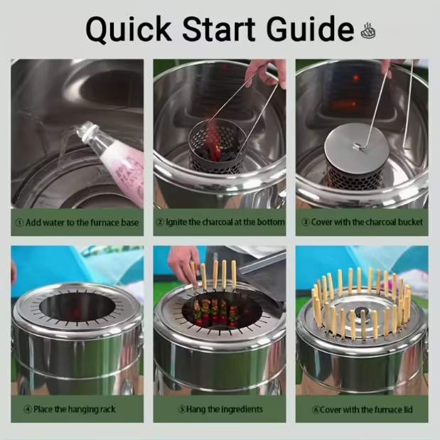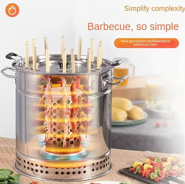 Barbecue et foyer extérieur - Grand poêle multifonction en acier inoxydable, four vertical sans fumée pour cuisson au bois et chauffage intérieur/extérieur