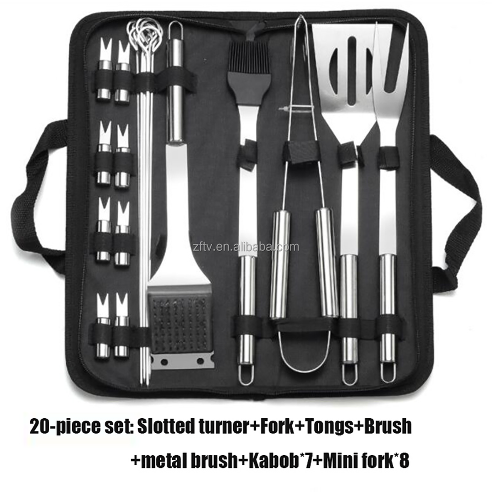 Ensemble d'ustensiles de Barbecue, pinces de Barbecue renforcées, accessoires de Barbecue en acier inoxydable de 20 pièces avec étui de rangement