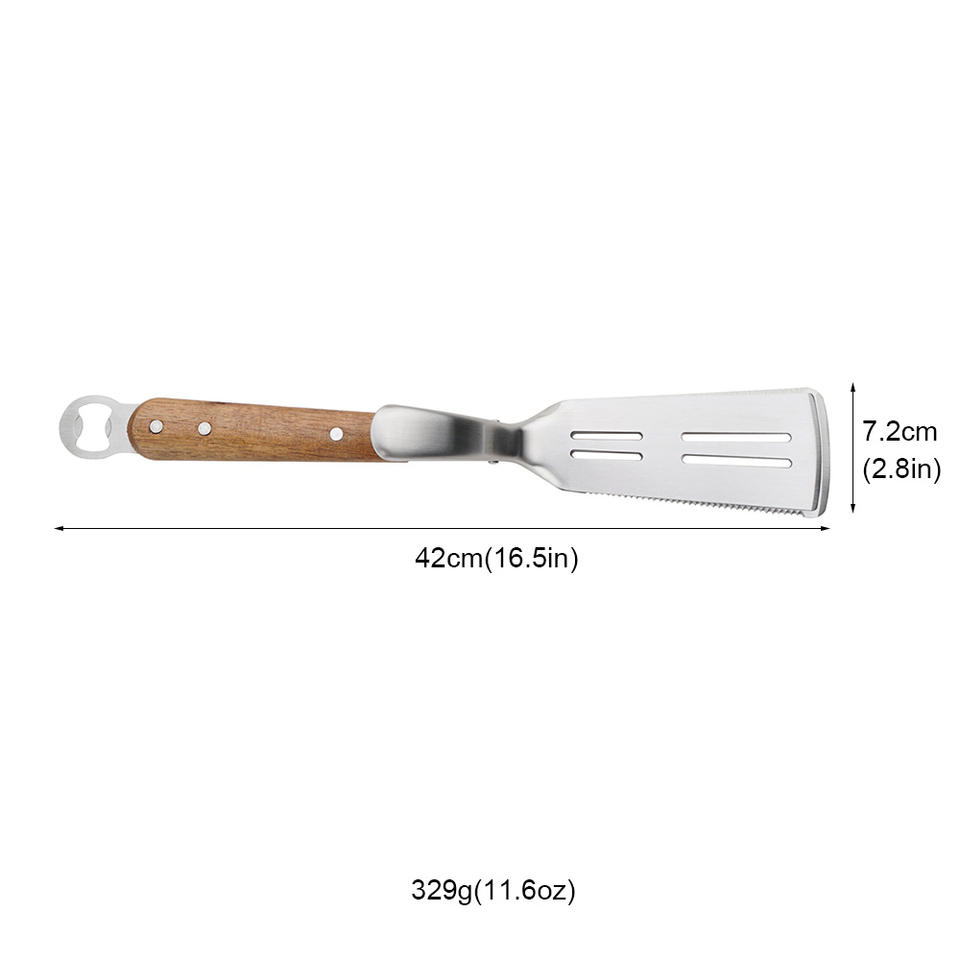 Spatule de barbecue multifonctionnelle avec manche en bois, parfaite pour les grils et les brochettes de barbecue, pour le camping et les pique-niques