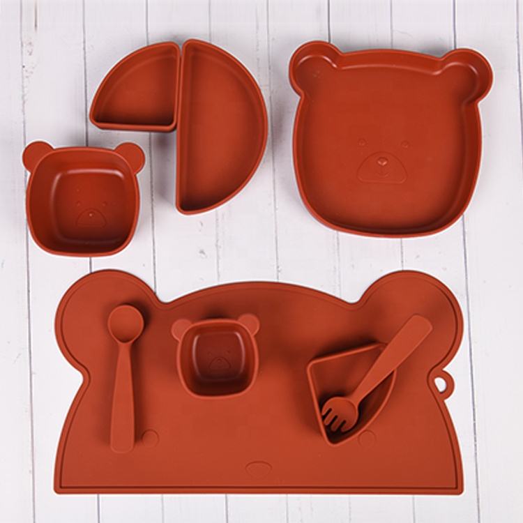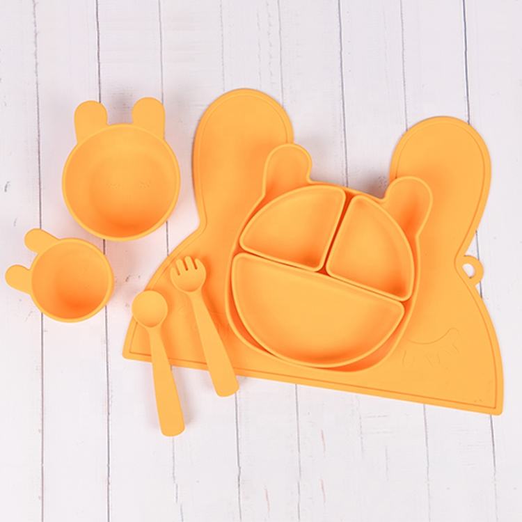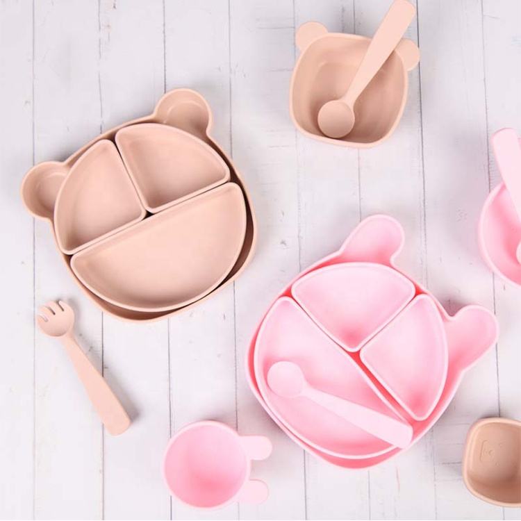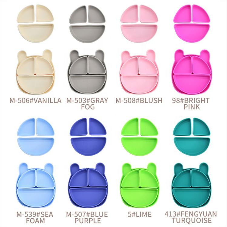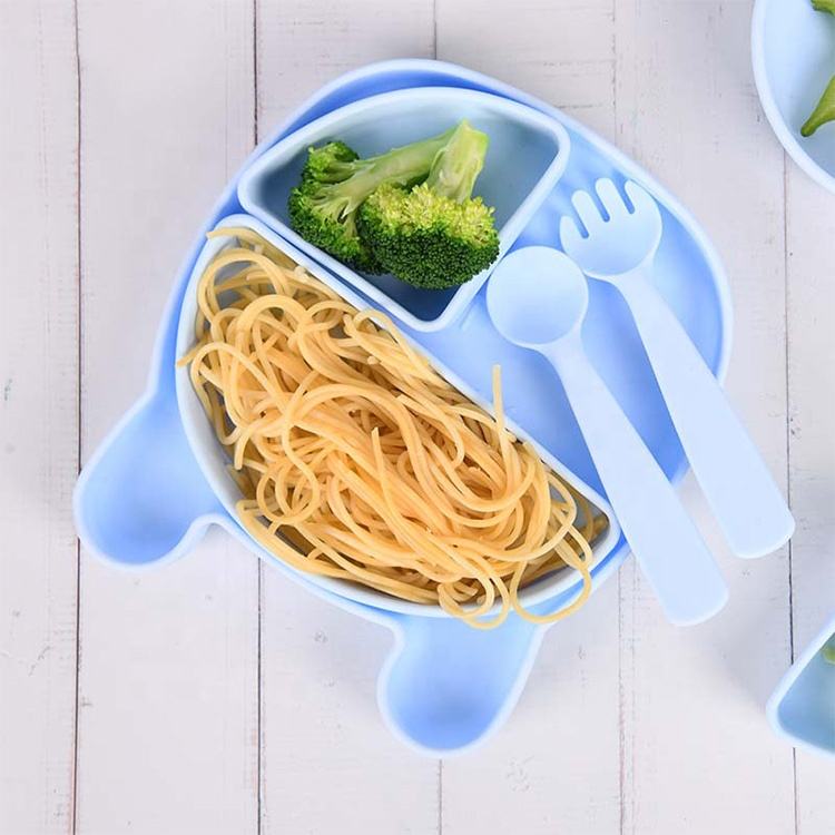BBean Nouveau Design Assiettes Bébé en Silicone Colorées Ours Lapin Chat Sans BPA Écologiques Sûres Faciles à Nettoyer Mignonnes pour l'Alimentation des Bébés