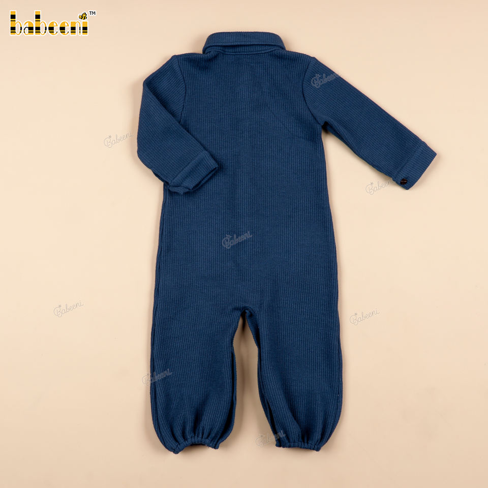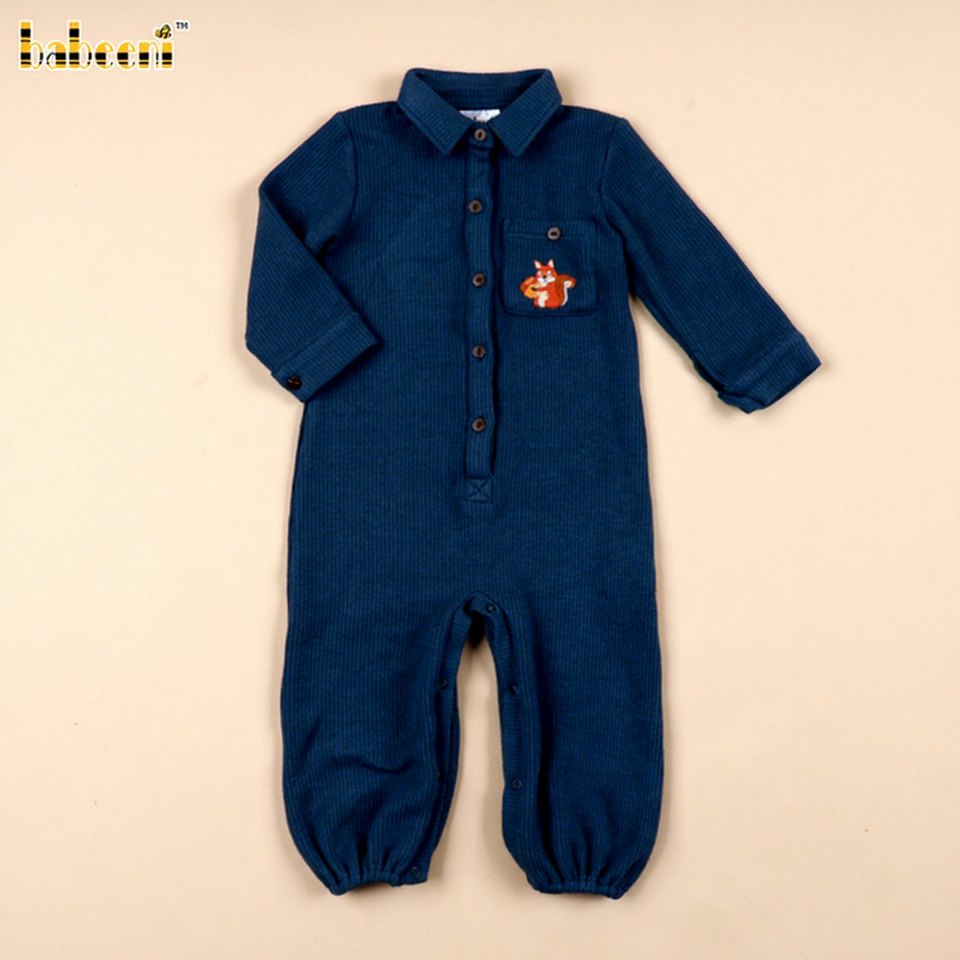 Babeeni BC1424 Combinaison longue bébé vert sarcelle profond brodée main motif écureuil, en Spandex/Coton de luxe, fermeture boutonnée, motif à thème, pour l'été
