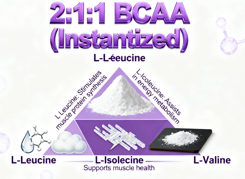 Ingrédient principal:L-Leucine, L-Isoleucine, L-Valine (rapport BCAA 2:1:1)