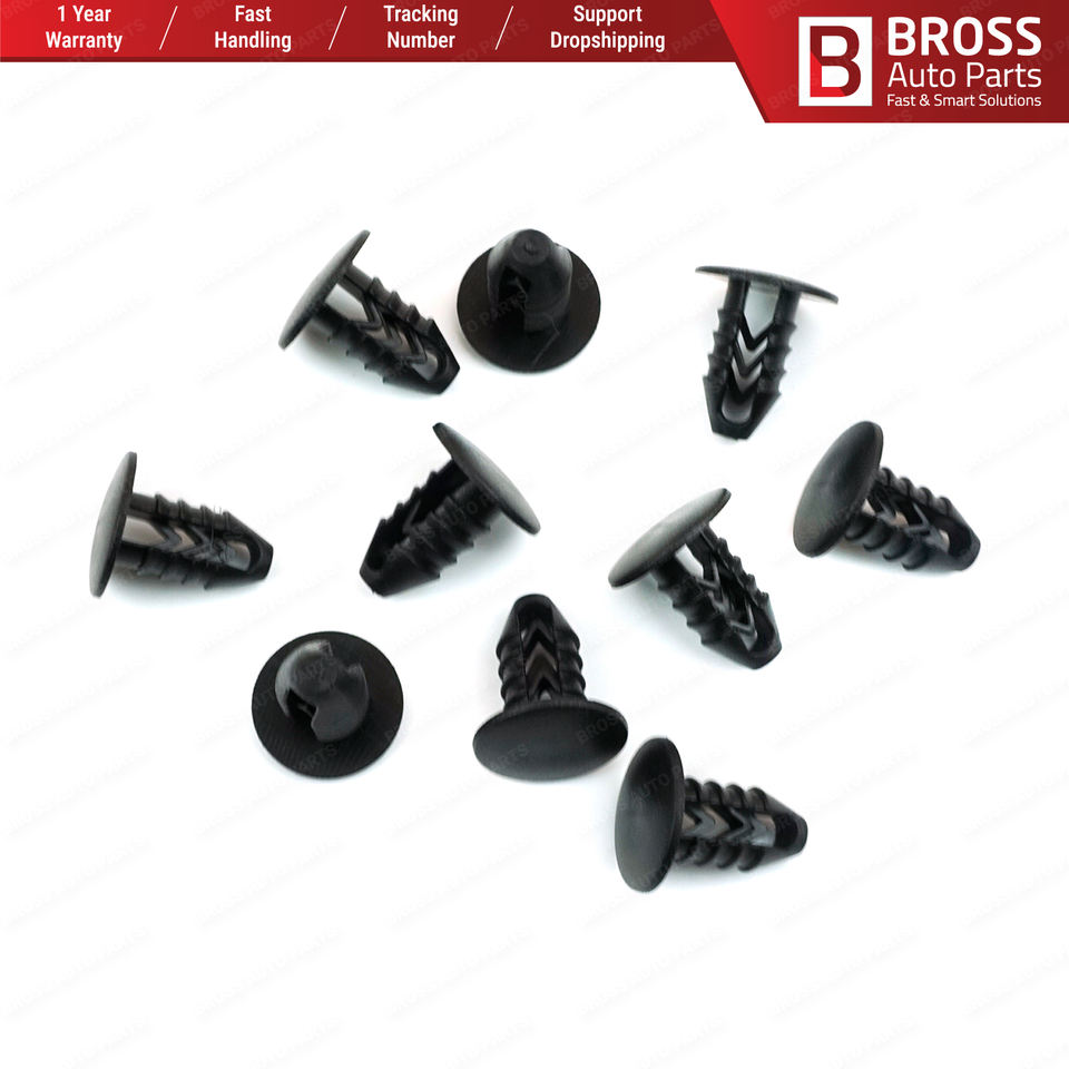BCF5044 BROSS AUTO PARTS 10 Pièces Clips en forme de sapin M.10 pour Fiat Head Certifié ISO 9001 Garantie de 3 mois 15,70 mm