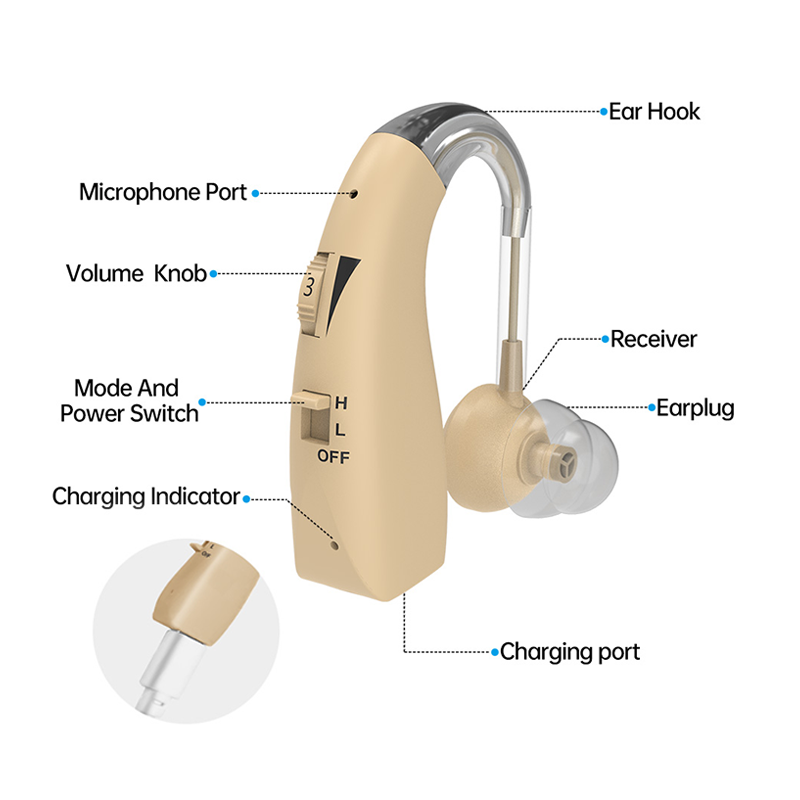 Aide auditive BTE à haut rendement BD-B105 | 120 dB Max OSPL90 | Convient pour la perte auditive conductive | Prix direct d'usine