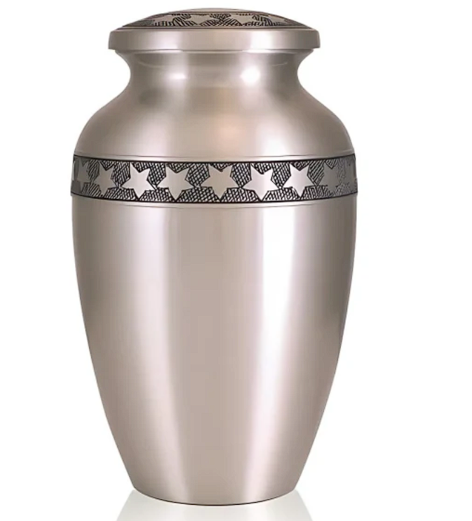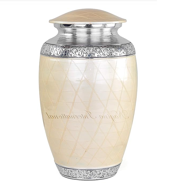 Urne funéraire classique gravée en blanc, magnifique, en métal, pour adultes, pour cendres humaines, style américain/européen