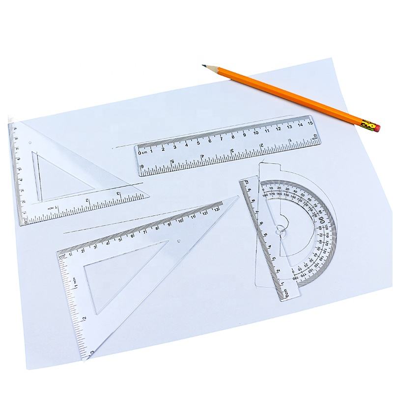 BECOL Promotional 15cm Plastic Ruler Set Student Maths Geometry Set Squares Triangle Ruler Protractor for School
