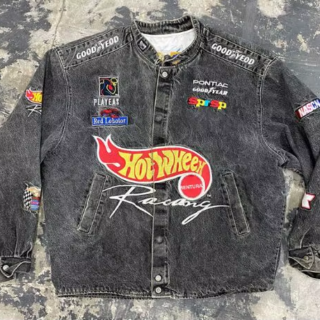 Veste de course en coton brodée à boutons, délavée à l'acide, vintage, de haute qualité, personnalisée BENTURA pour hommes