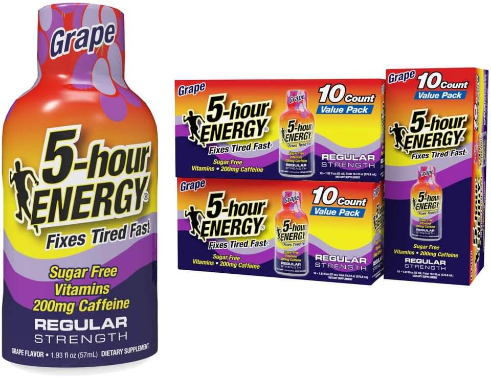 BEST 5-Hour ENERGY Shot saveur de raisin de force régulière 1.93 onces de taurine sans sucre-Pack de 24 bouteilles en vrac