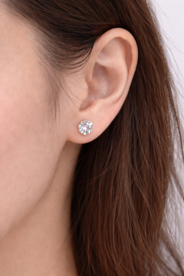 MEILLEURES BOUCLES D'OREILLES POUR FEMMES Boucle d'oreille solitaire unique en argent sterling 925 | Diamant rond de type CZ | Design minimaliste