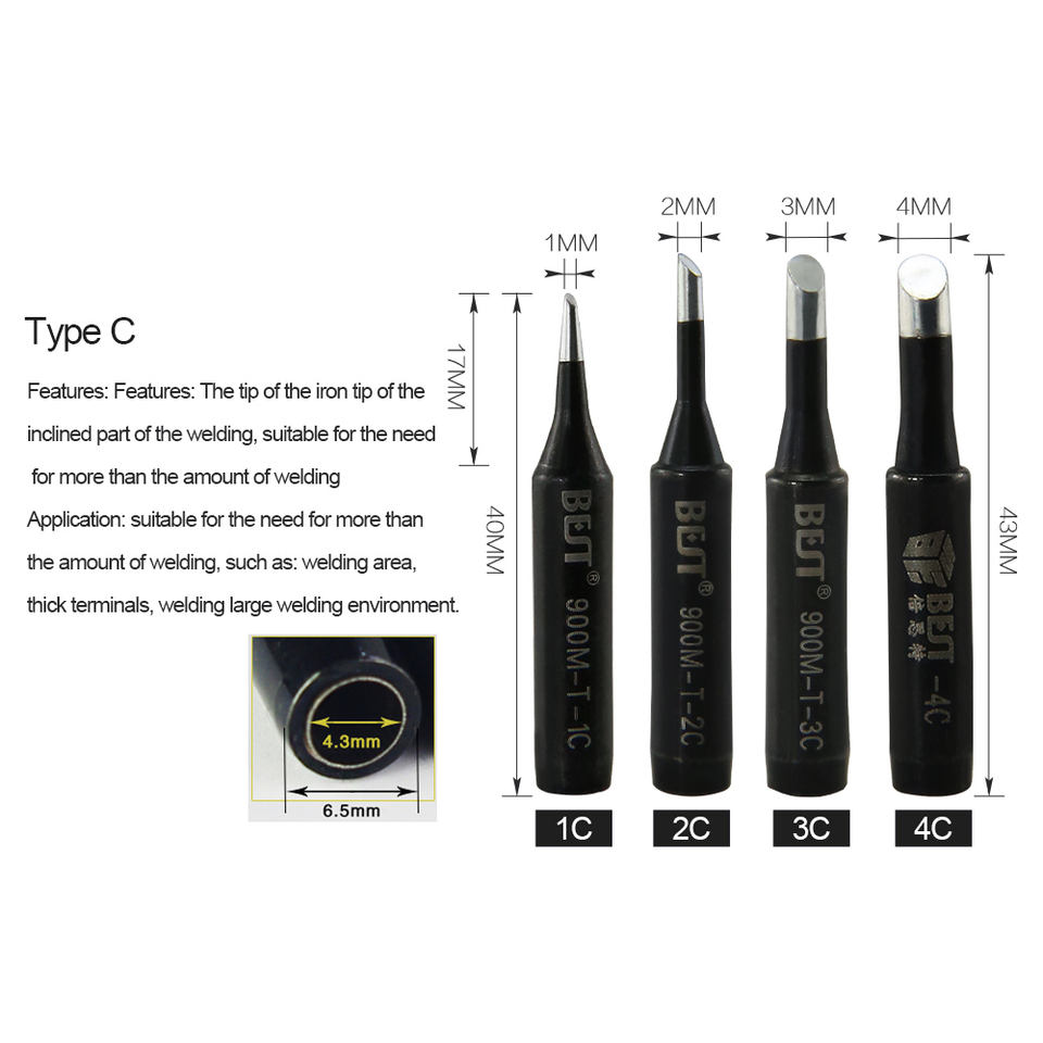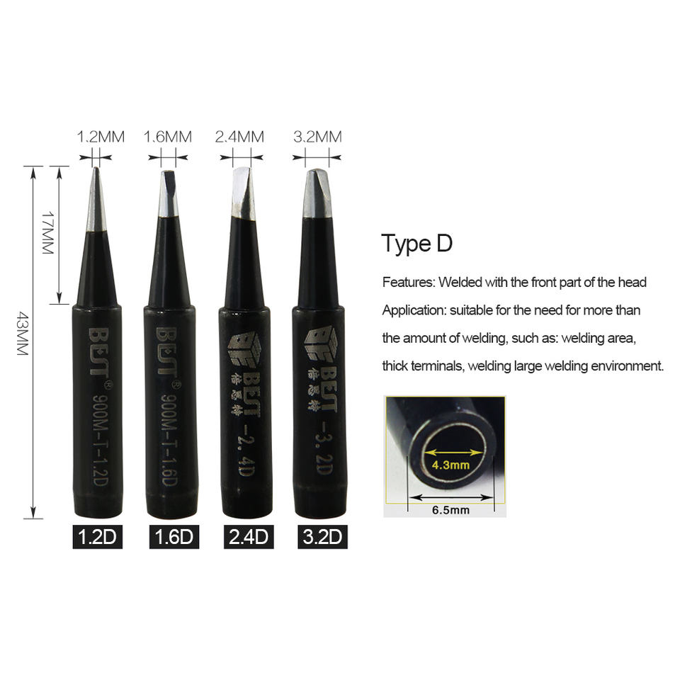 Pointes de soudage BEST BST-900M-T Series haute performance en cuivre chromé sans plomb 1.2D/1.6D/2.4D avec ouverture de 1.6mm pour soudage