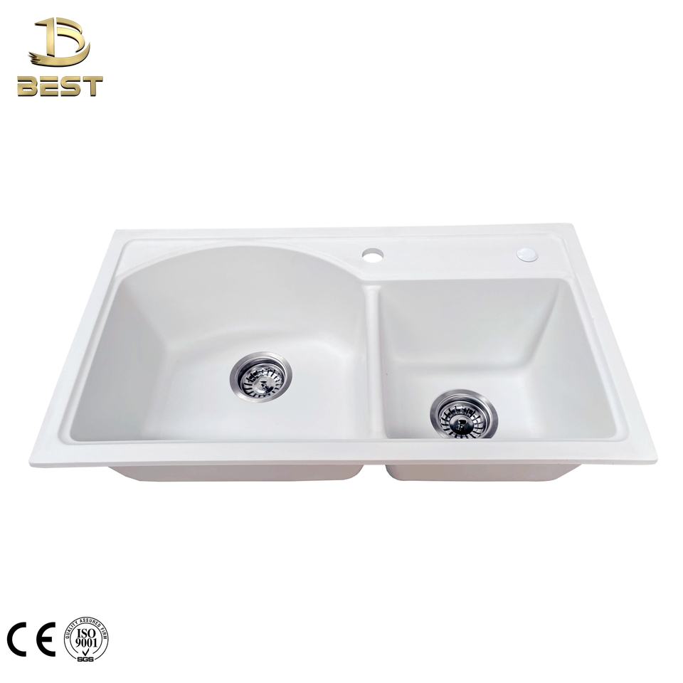 Évier de cuisine BEST-7844G de la marque BEST, fabriqué par des artisans vietnamiens, à cuve simple ou double, style granit, en quartz composite, à encastrer