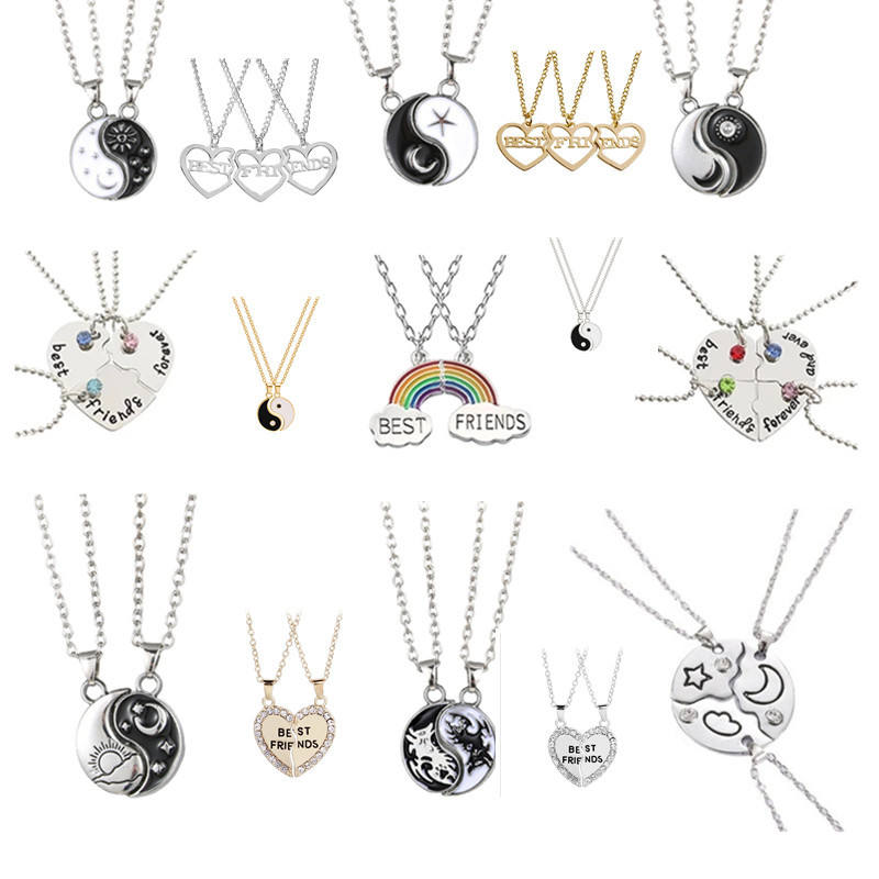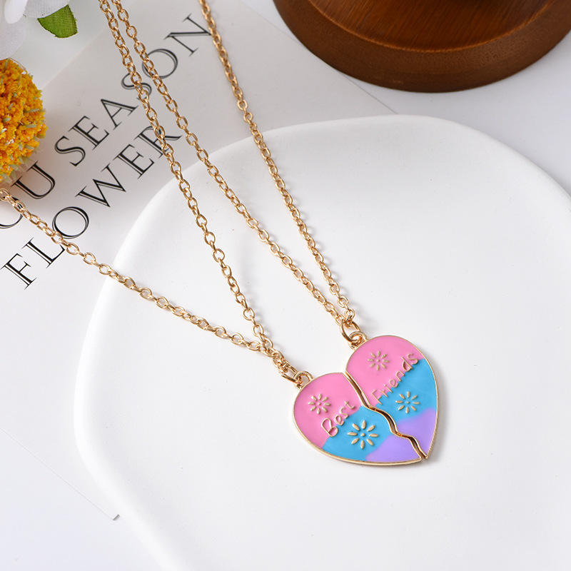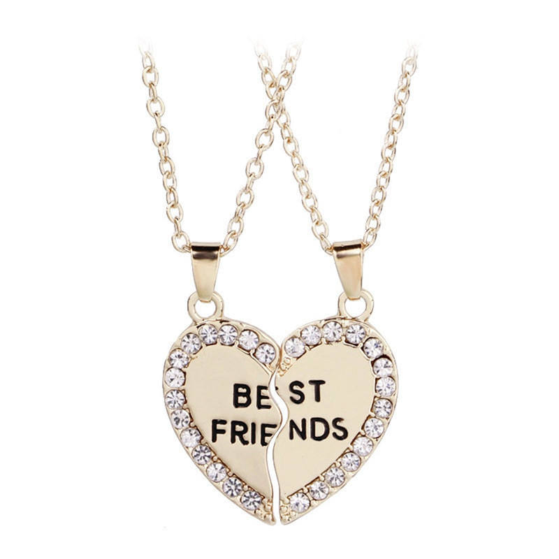 MEILLEURS AMIS Collier d'amitié avec pendentif carré en forme de cœur mignon, chaîne à maillons, matériau en alliage, cadeau unisexe