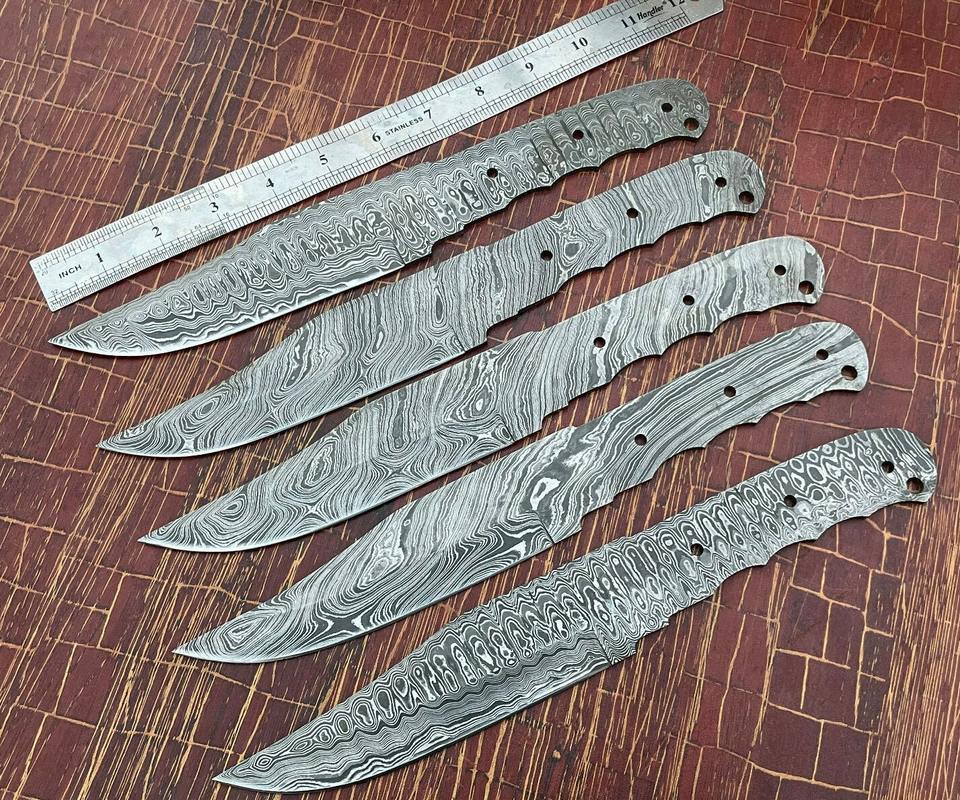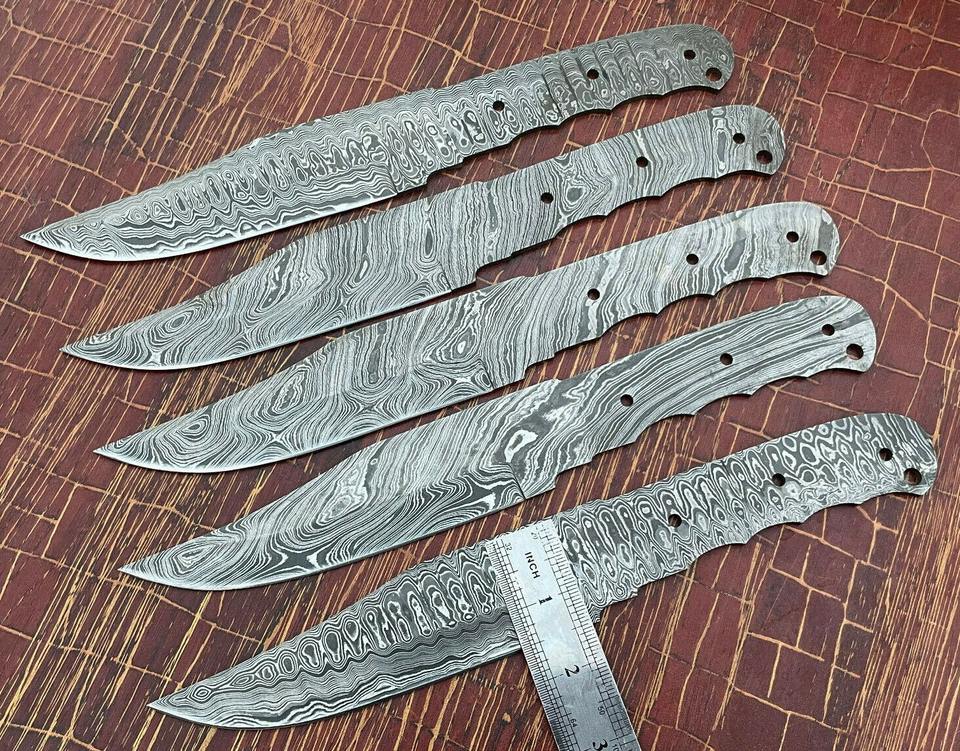 MEILLEURE QUALITÉ LOT DE 5 PCS COUTEAU DE CHASSE BOWIE LAMES VIERGES DAMAS EN ACIER FORGÉ SET COUTEAUX.