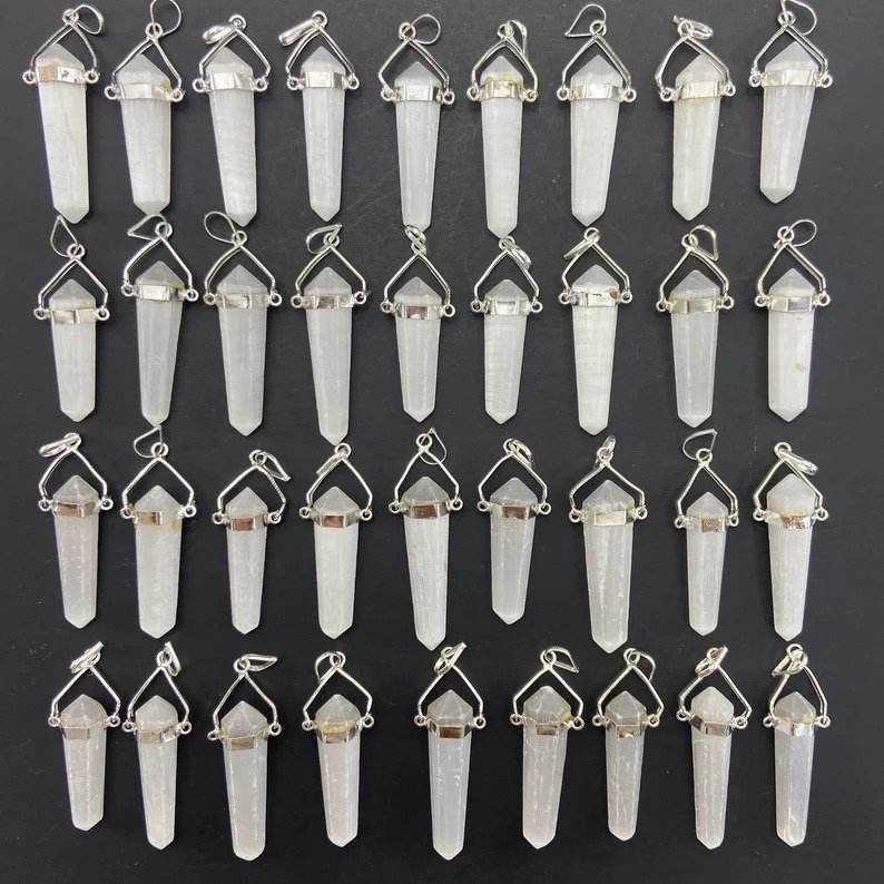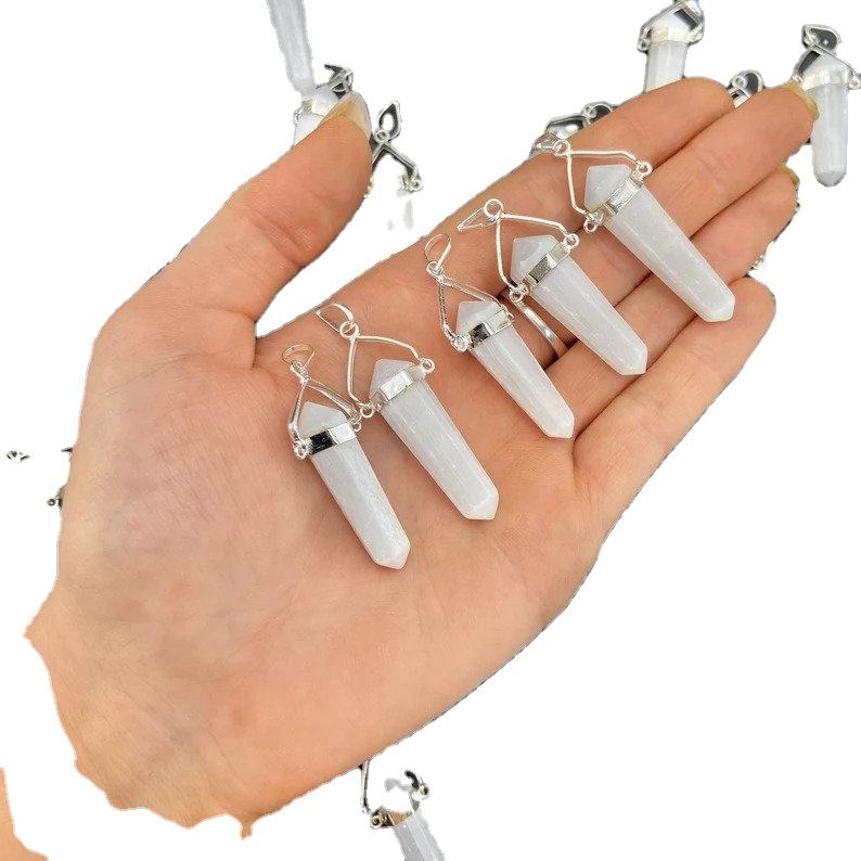 PENDENTIF CRAYON À POINTS À DOUBLE TERMINÉ DE SÉLÉNITE DE MEILLEURE QUALITÉ PENDENTIF À CRAYON EN GROS POUR LA GUÉRISON ET L'USAGE SPIRITUEL