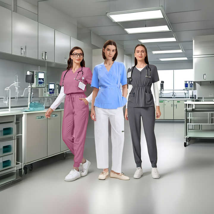 MEILLEURE QUALITÉ coloré gommage médical personnalisé imprimé médical résistant à l'eau nouveaux designs infirmières jupe ensemble-uniforme FMF-BASSE quantité minimale de commande