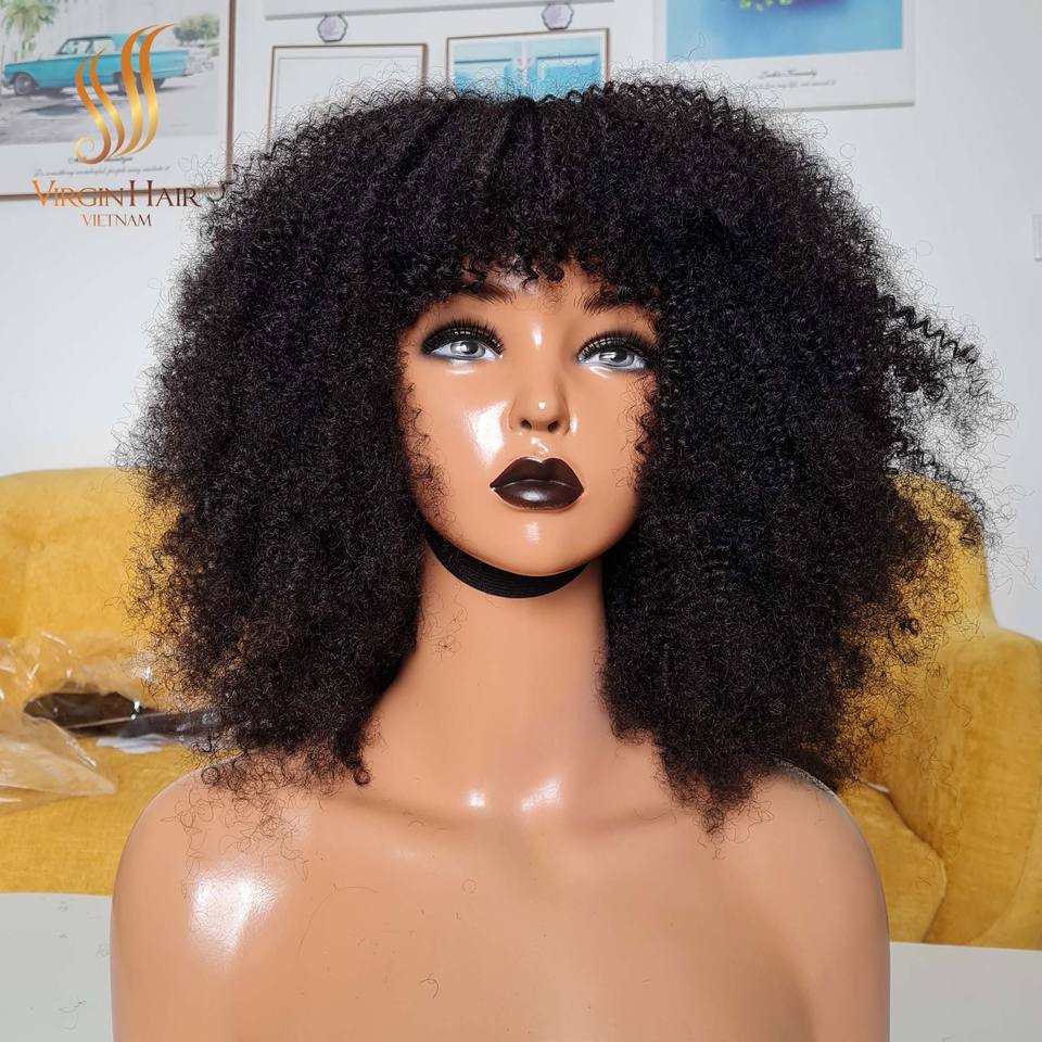 MEILLEUR VENDEUR Perruque Frange Pixie Bouclés 100% Perruques de Cheveux Humains Cheveux Bouclés Vietnamien Couleur Naturelle Prix Usine