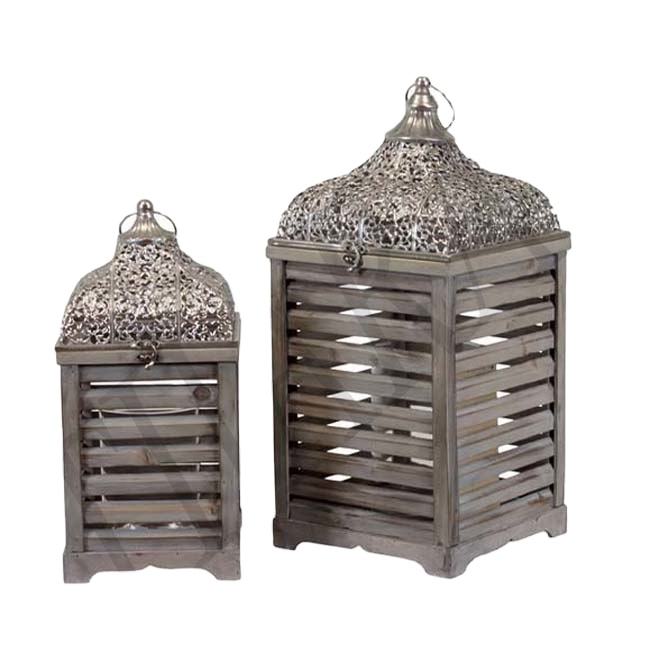 Meilleure vente Lanterne à bougie en bois et métal pour décoration de maison de Noël élégant pour mariage Autres bougeoirs Pots à bougie