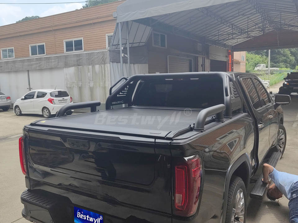 BESTWYLL Couvre-caisse de camionnette électrique automatique à enroulement pour GMC Chevrolet Silverado Sierra 1500 E-K44
