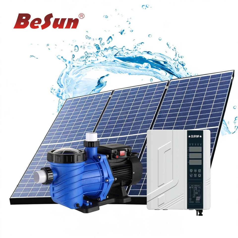 BESUN 1500W Pompe de piscine solaire hybride AC/DC Kit système ACDC 22m 20~27 M3/h 100~264V Pompe de piscine solaire haute pression