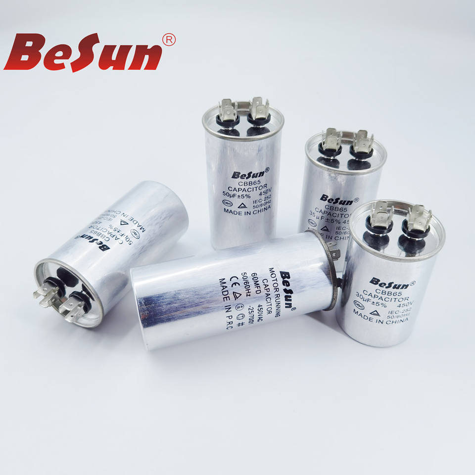 Condensateur de marche du moteur AC BESUN CBB65 pour climatiseur, réfrigération avec certificat CE UL, condensateur de climatiseur OEM ODM