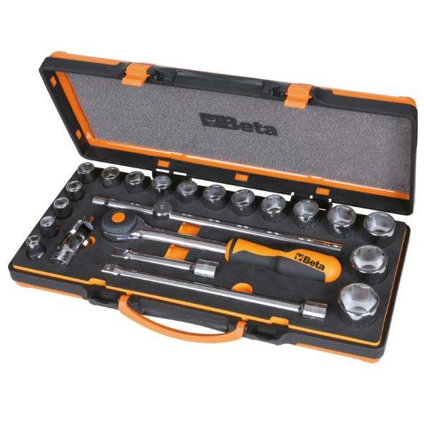 BETA Jeu de douilles hexagonales 17 pièces avec 5 accessoires dans un boîtier en métal pour plateau en mousse