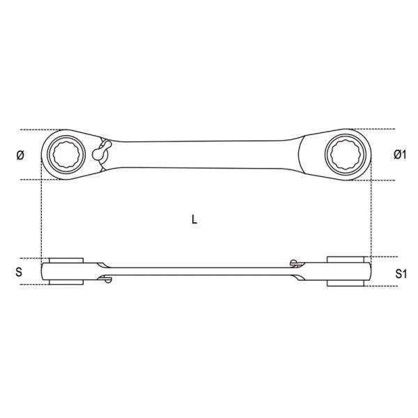 BETA Clés à anneau bi-hexagonales plates à double extrémité chromées Conception à cliquet multi-pack