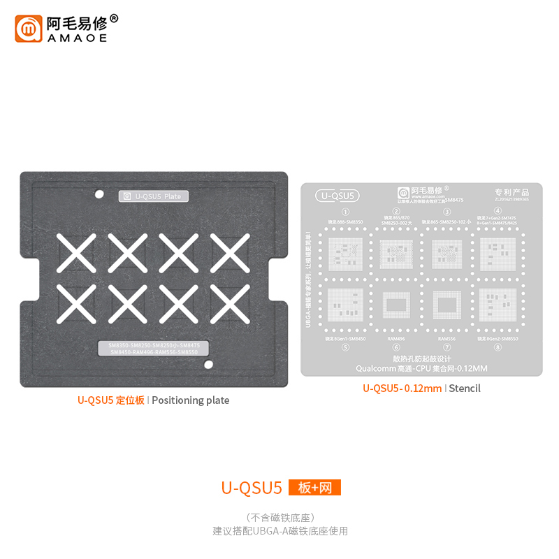 Pochoir de reboulage BGA pour CPU et RAM des séries Qualcomm MSM SM SDM SM8350/8750/7475/8550/7315/8635/7450/4250/7350/6150 SDM845 RAM556/366