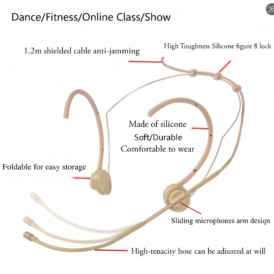 Microphone Casque Condensateur BHA H12 avec Crochet d'Oreille, Couleur Chair, pour Formation et Guide Touristique, Prix de Gros Usine (12 ans d'expérience), OEM CE FC