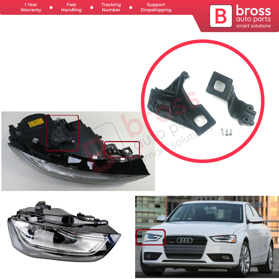 BHL539 Headlight Holder Mount Repair Bracket Tab Set Right Side for A4 RS4 8K2 B8.5 A5 S5 RS5 B8.5 8T0998122B Bross Auto Parts