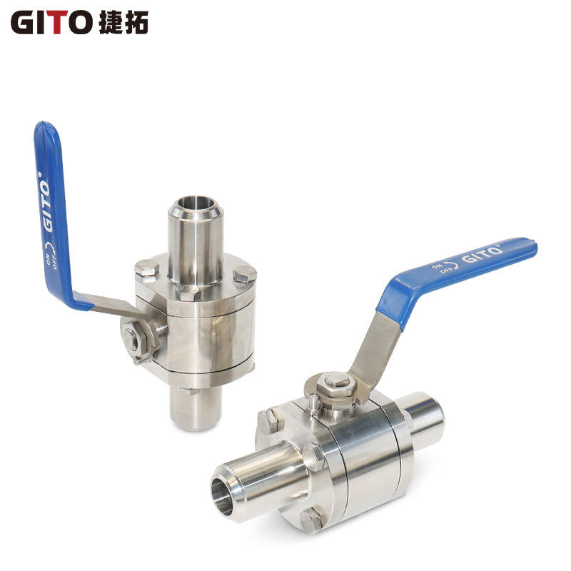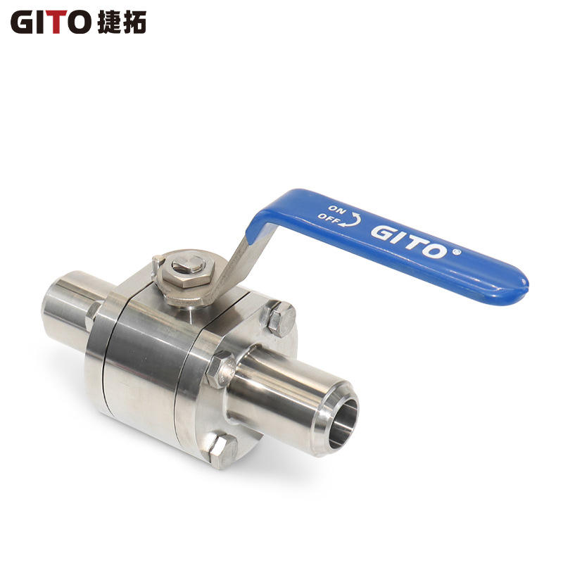 Vanne à boisseau sphérique manuelle en acier inoxydable de qualité BA, trois pièces, haute pression, DN25, soudée, pour milieux aqueux