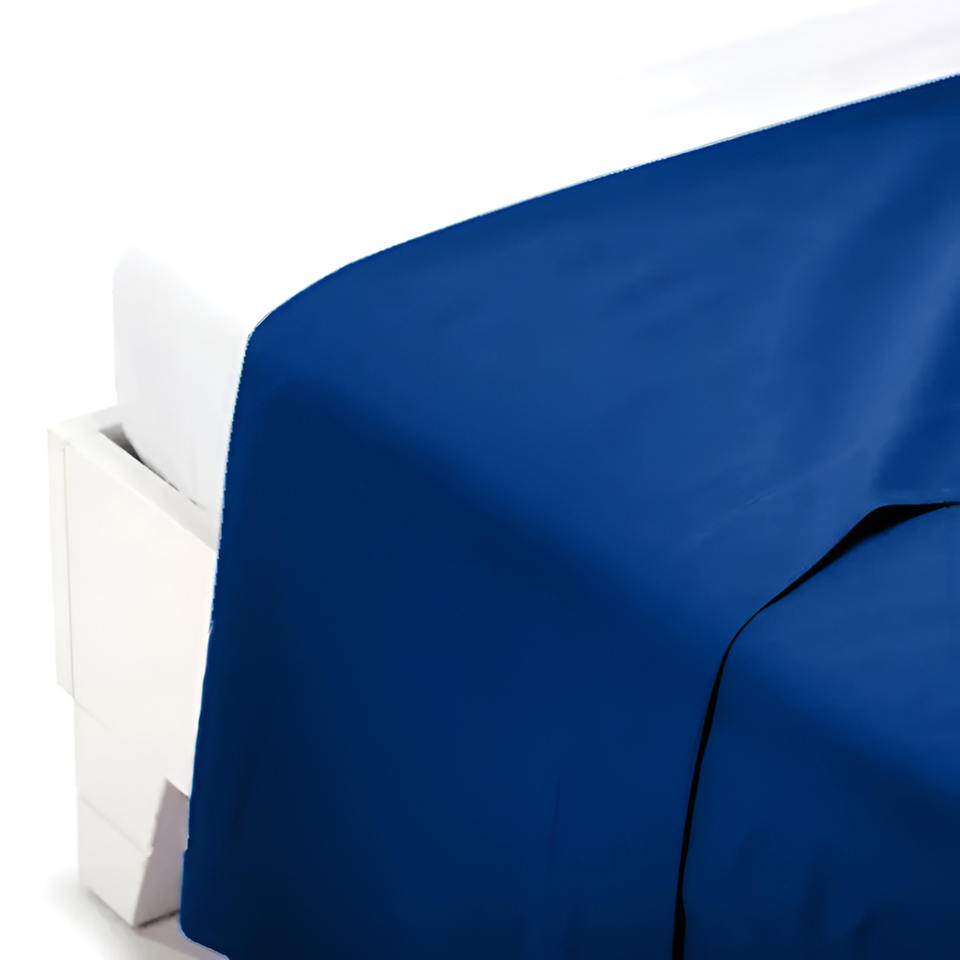 BIANCALUNA - 1 drap-housse en lin et demi, couleur bleu
