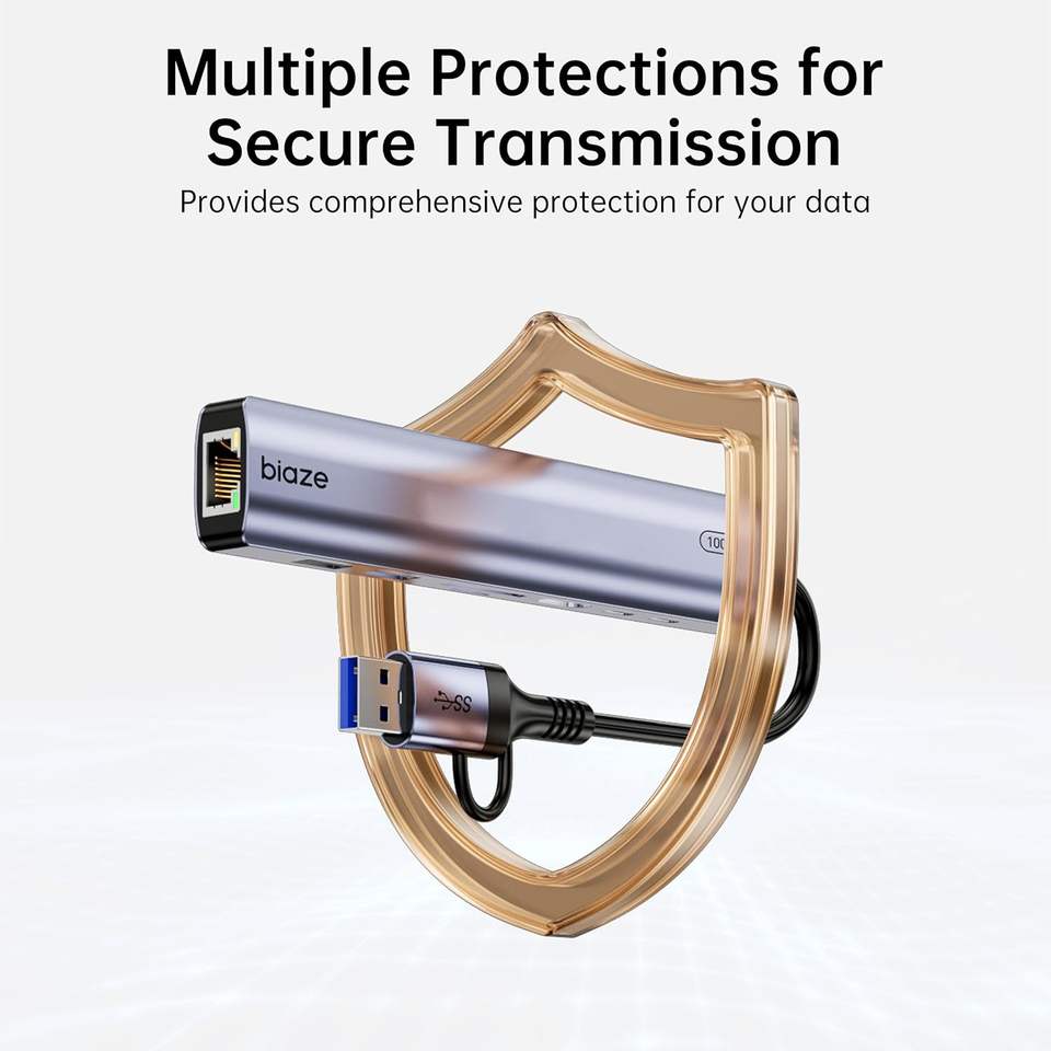 Adaptateur Hub USB/USB-C 9-en-1 BIAZE pour MacBook/iPhone, 3 ports USB (2xUSB 3.0, 1xUSB 2.0), Ethernet 100M, lecteur de cartes SD/TF, 3,5 mm