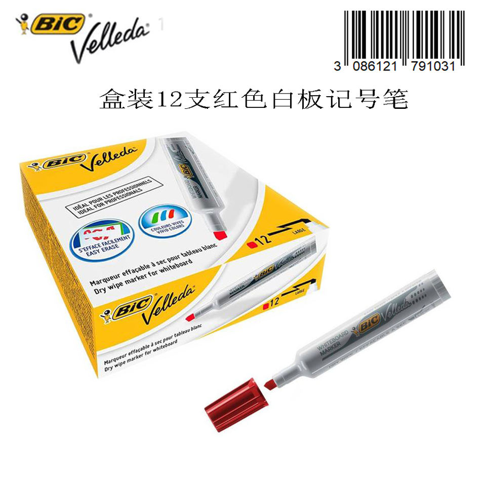 Marqueur pour tableau blanc Velleda, pointe inclinée rouge, outil d'écriture de 12 mm, pour une utilisation en classe et au bureau
