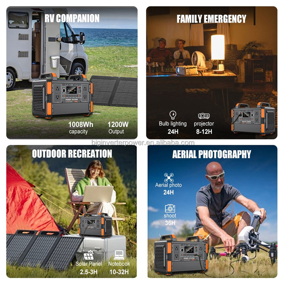 Générateur solaire portable BIGINVERTER pour camping-car, station d'alimentation 1000W 12V 220V 1KVA pour camping-car, camping, hors réseau, et alimentation de secours à domicile