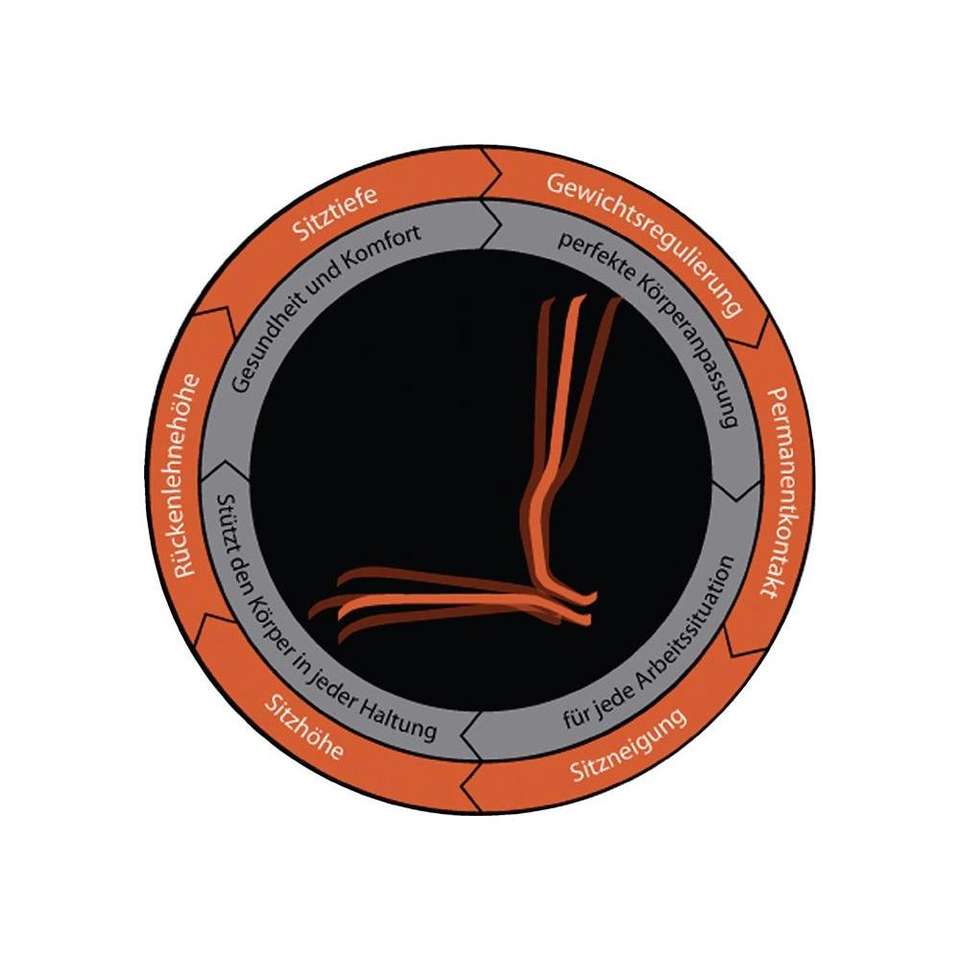 BIMOS Office swivel chair neon w. gliders and lift-assist, orange seat h. 590-870mm perm. contact