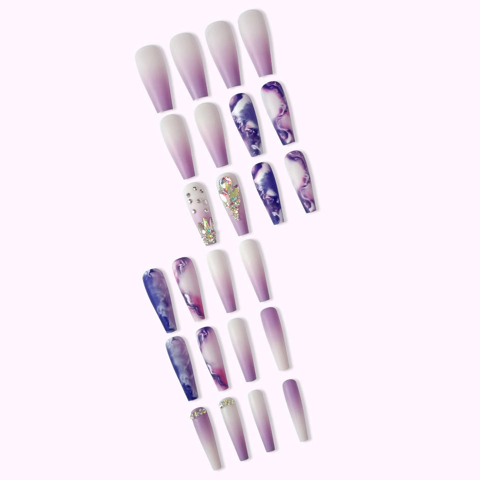 Nom:BIN 24pcs Faux Ongles Strass Amovible Presse Française Sur Les Ongles