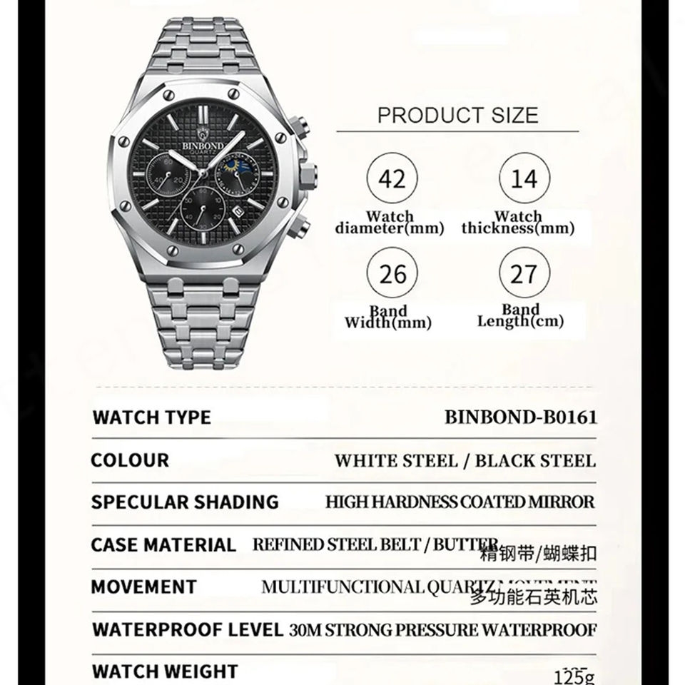 Dispositif:Date automatique, Chronographe, Jour/date, Imperméable, Lumineux, Rétro-éclairage